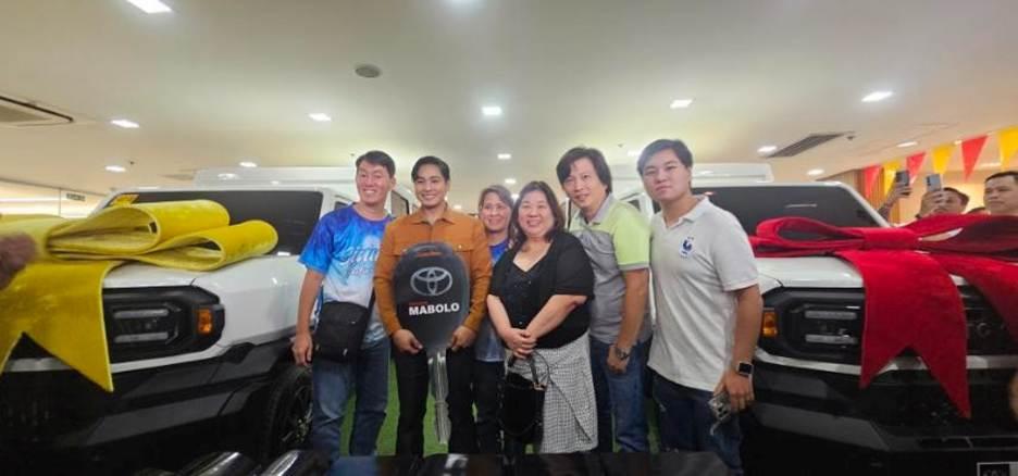 The Ongs and the Lins received the ceremonial keys to their Tamaraw FX from Coco Martin at the Toyota Mabolo showroom on January 17.