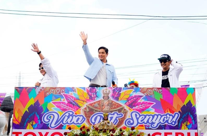 Coco Martin aboard the float of Toyota Team Cebu joins the Grand Parade, to the delight of the street crowd.
