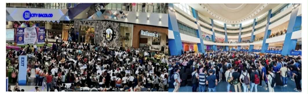 Massive crowd of job seekers during Labor Day Job Fairs at SM City Bacolod (left photo) and SM Mall of Asia (right photo).