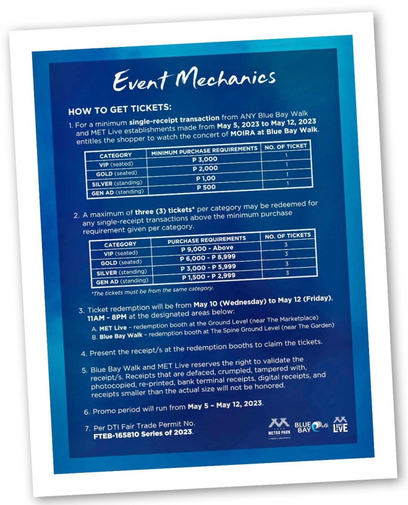 Bay Walk, and the Ground Floor of MET Live to redeem your tickets. Only on May
